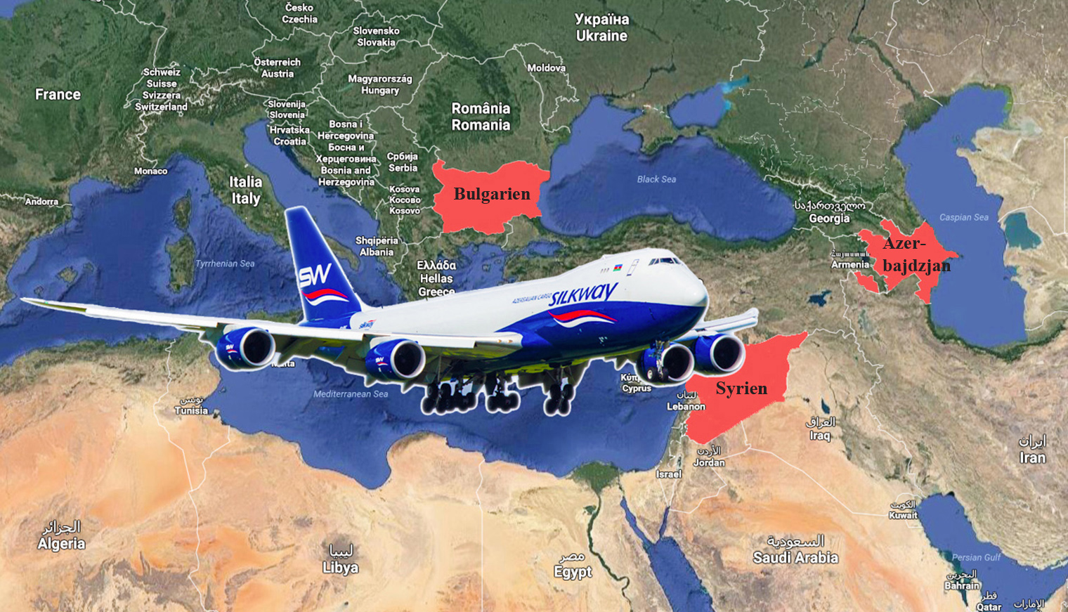 Enligt internationella flygregler är det förbjudet att frakta militär utrustning i civila plan. För att möjliggöra transporterna har därför Azerbajdzjans UD i samarbete med de inblandade staterna stämplat Silk Way Airlines flygningar som diplomatflyg. Bolaget har under de senaste tre åren gjort minst 350 diplomatflygningar med hundratals ton vapen i lasten.