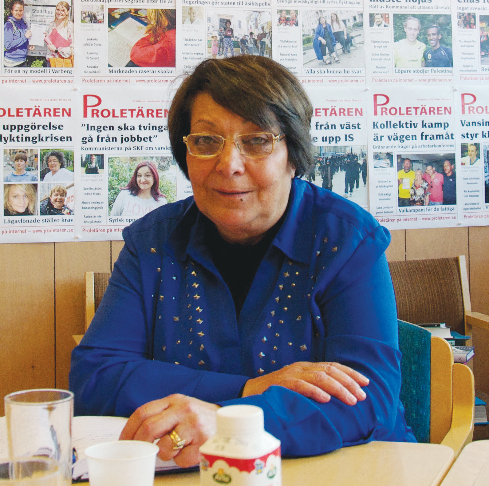 När jag äntligen får sitta ner med Leila Khaled är det inte för så lång tid som jag hoppats på. Hon har precis haft sitt andra möte för dagen och är strax på väg för att äta lunch, för att därefter fortsätta mot ytterligare ett möte.