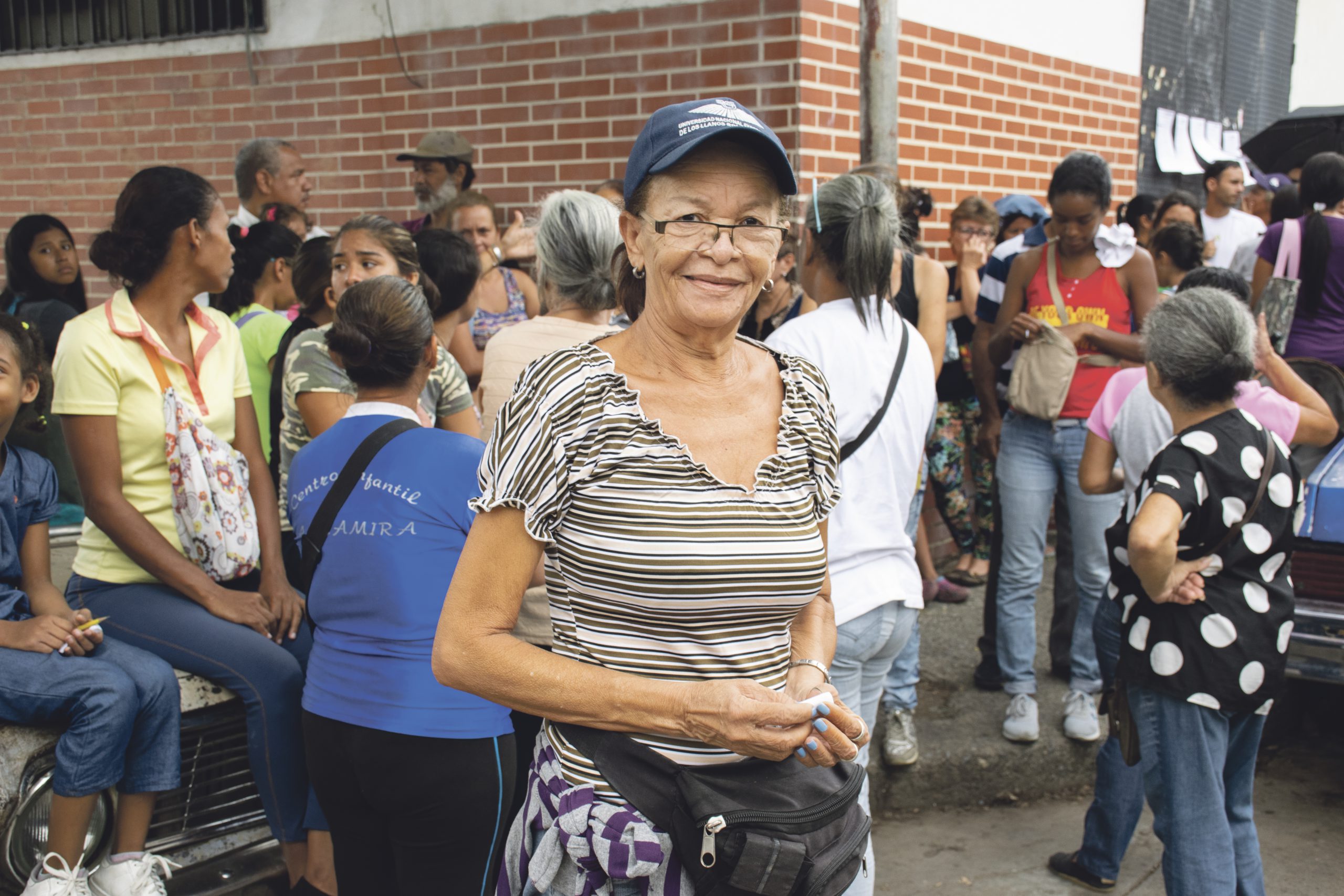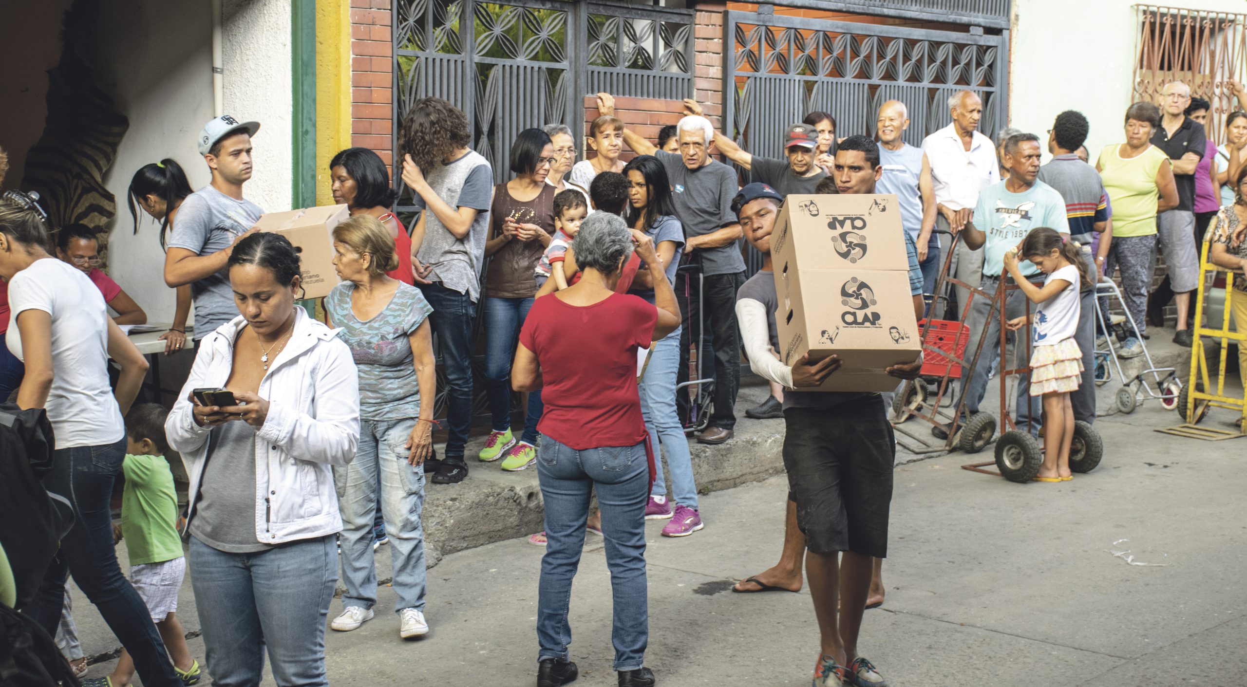I stadsdelen Santa Rosalia står Carmen Miertes och väntar på sin tur att gå in och handla på en sådan marknad. Med sin pension som motsvarar minimilönen på 40.000 bolivares i månaden (cirka tre dollar i början av augusti, en månad senare knappt två dollar) är hon beroende av CLAP-programmet.