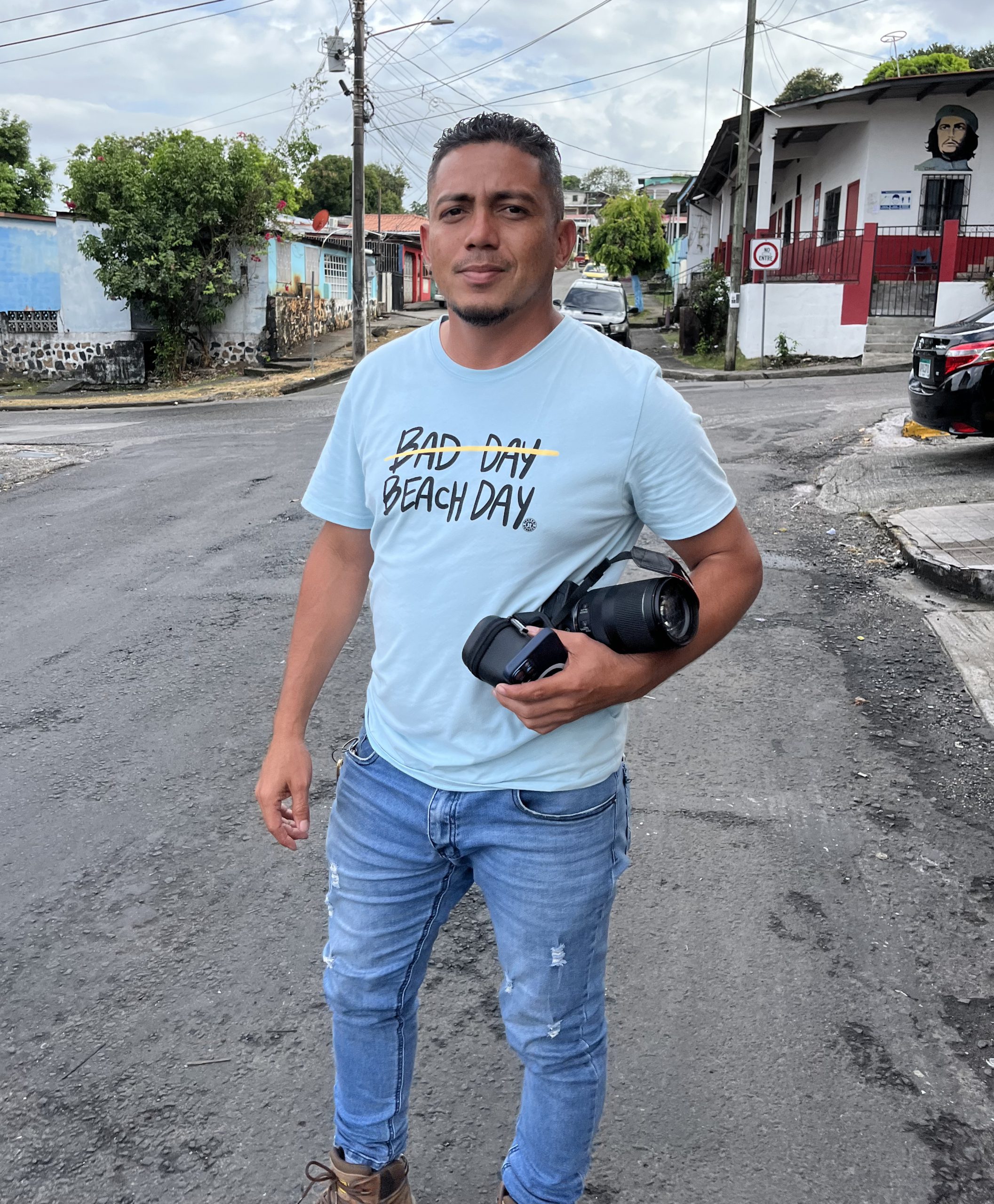 Den timslånga protesten var utlyst av facket, och genomfördes fredligt i resten av landet utan incidenter. Precis som många andra demonstrationer mot lagförslaget de senaste månaderna, berättar Suntracs pressekreterare Irving Pinzón, när han kör oss från den banktäta stadskärnan i skatteparadisets huvudstad, till högkvarteret i den mer blygsamma stadsdelen Veranillo där Jonatan finns.