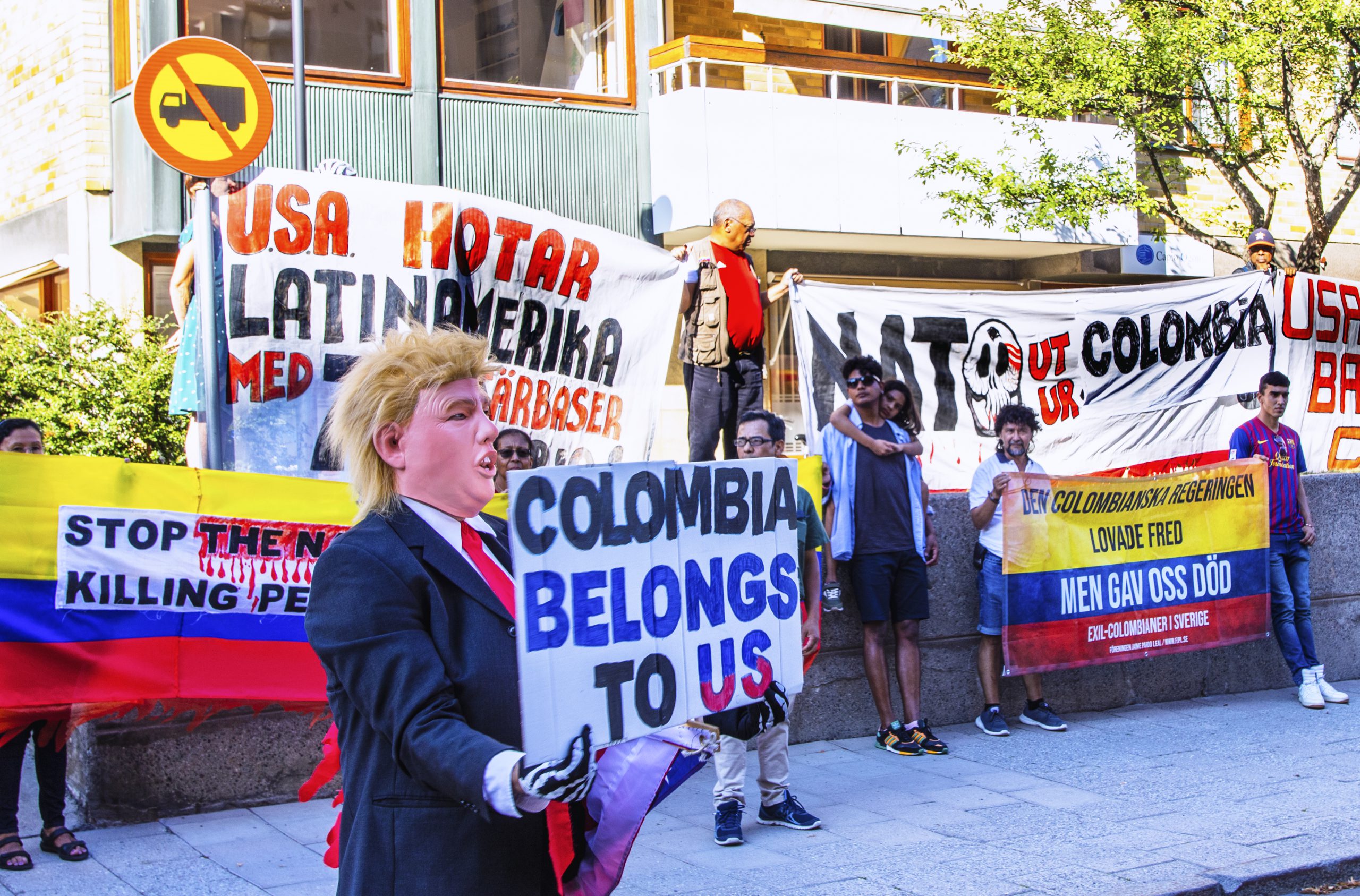 Protester i Stockholm när Trump hyllade USA:s militär