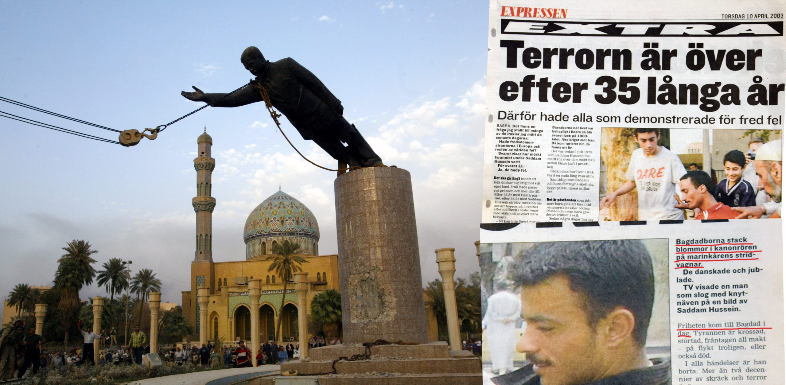 En krossad staty i ett krig byggt på lögner