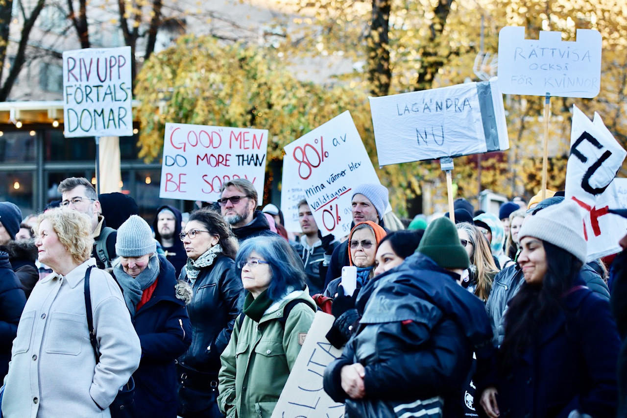 Hundratals i protest mot mäns våld mot kvinnor
