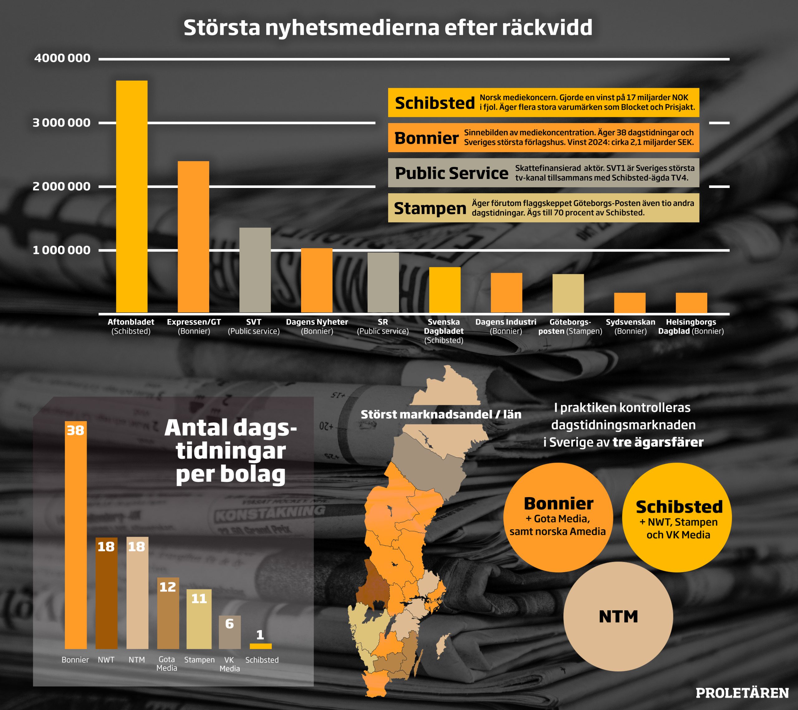 Tre jättar kontrollerar tidningsmarknaden
