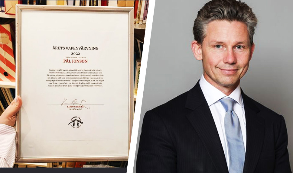 Försvarsministern tilldelas ”Årets vapenvärvning 2022” av Svenska Freds