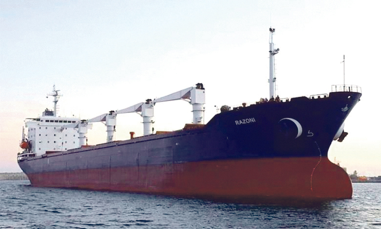 Första spannmålsexporten från krigets Ukraina